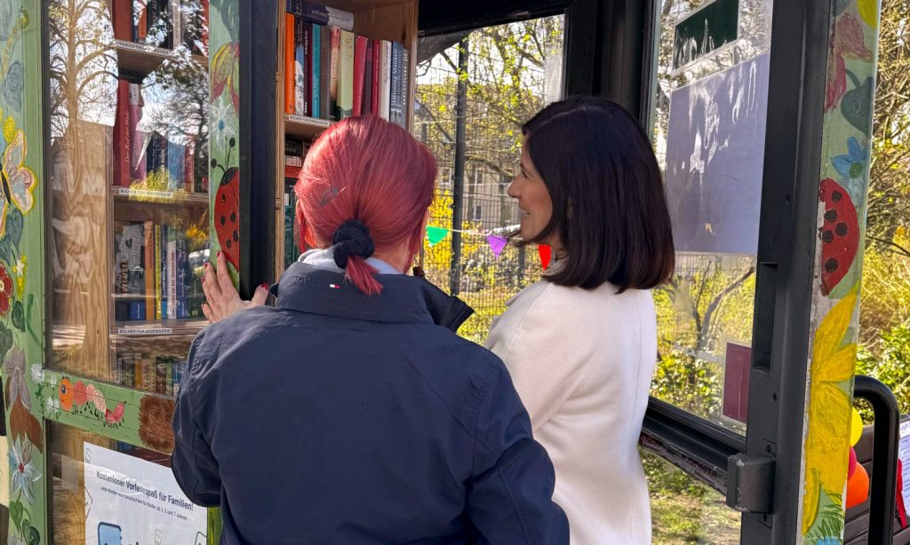 Die Bücherzelle ist längst mehr als ein Ort zum Tauschen und Finden von Literatur. Sie ist ein kleines Wahrzeichen unseres Kiezes geworden. Ein Ort des Austauschs, der Begegnung und der Inspiration. Mit der neuen Vorlesebank wird dieser Gedanke weitergetragen. Sie lädt dazu ein, Bücher nicht nur mitzunehmen, sondern auch direkt vor Ort gemeinsam zu erleben.